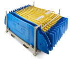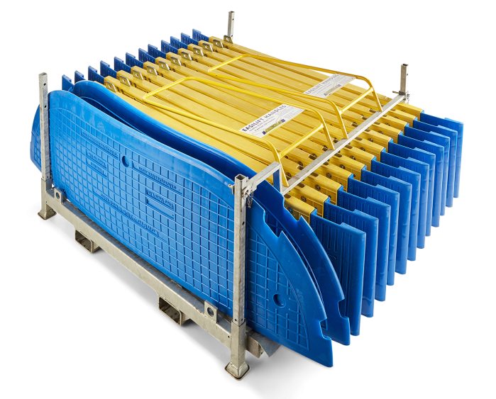 Mit Hilfe der Verlegehilfe lassen sich mehrere Mittel- und Endstücke schnell miteinander verbinden und verlegen. Der Transport wird durch ein Gestell vereinfacht.